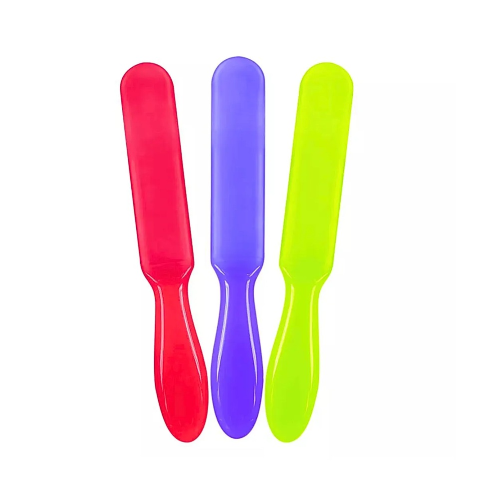 A espátula modelo abaulada é mais grossa e por isso facilita o manuseio e a locomoção do produto de uma recipiente a outro ou do recipiente até a pele, facilitando também na hora de espalhar o produto na região desejada do corpo, é excelente para profissionais da área de estética cabeleireiros para manuseio de tinturas e produtos cremosos.