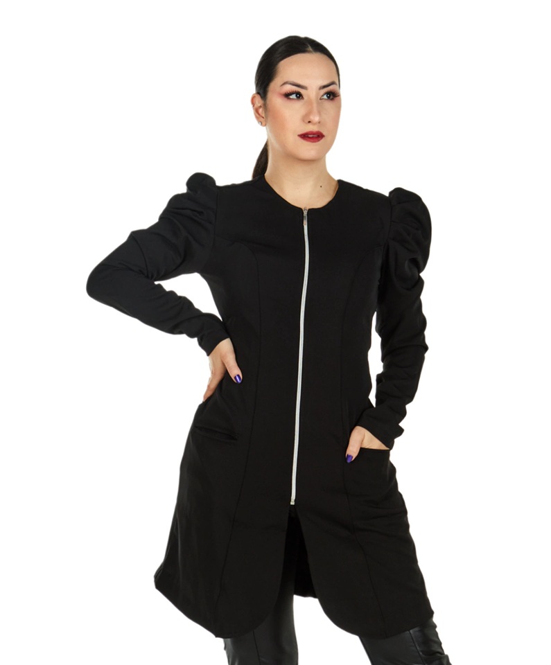 Jaleco Feminino Acinturado Manga Longa Bufante Princesa Preto