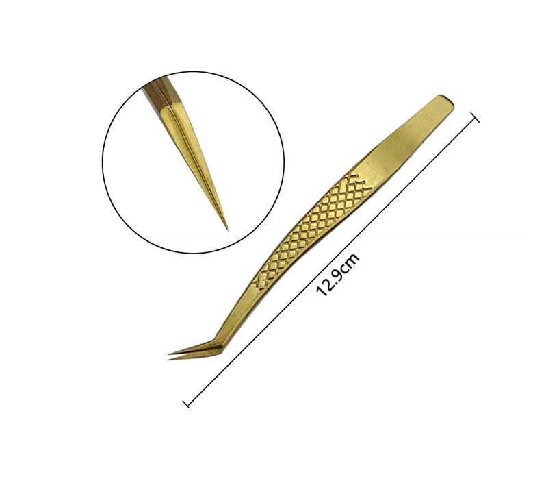 Pinça Alongamento de Cílios Curva 7 Dourada Zhengli